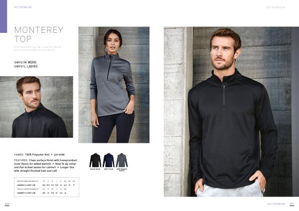 FEATURES Clean surface finish with honeycombed inner fleece for added warmth • Neat ½ zip collar and flat-locked seams for comfort • Longer line with straight finished hem and cuff |