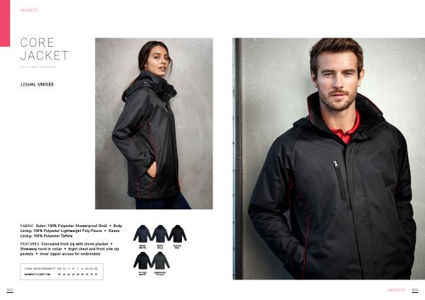 FABRIC Outer : 100 % Polyester Showerproof Shell • Body Lining : 100 % Polyester Lightweight Poly Fleece • Sleeve Lining : 100 % Polyester Taffeta |