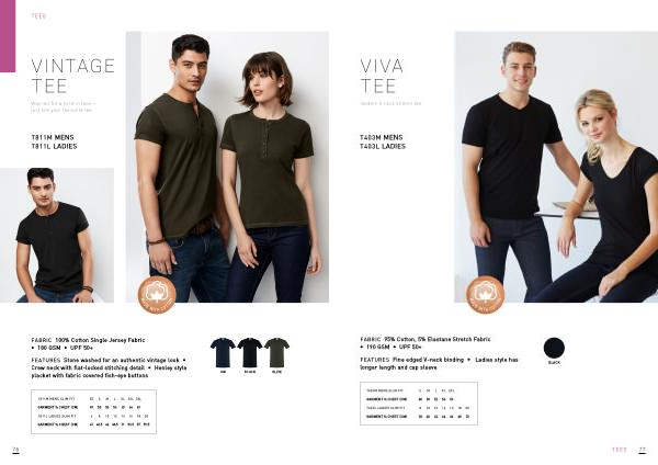 FEATURES Fine edged V-neck binding • Ladies style has longer length and cap sleeve