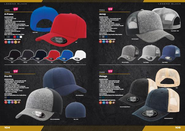 • Heather polyester - Front panels and peak Polyester Mesh - Side and rear panels