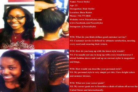 WM: What are your career goals? NS: My career goals are to franchise a chain of salons all across the United States and internationally.