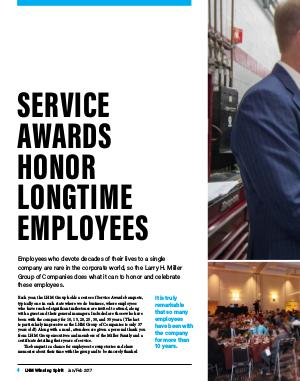 Each year, the LHM Group holds a series of Service Awards banquets, typically one in each state where we do business, where employees who have reached significant milestones are invited to attend, along with a guest and their general managers. Included are those who have been with the company for 10, 15, 20, 25, 30, and 35 years.( The last is particularly impressive as the LHM Group of Companies is only 37 years old!) Along with a meal, attendees are given a personal thank you from LHM Group executives and members of the Miller Family and a certificate detailing their years of service.