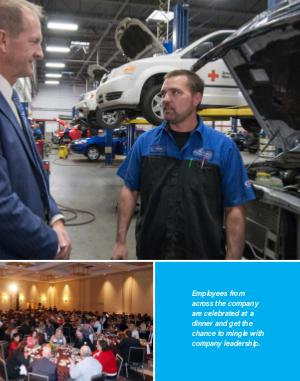 Employees from across the company are celebrated at a dinner and get the chance to mingle with company leadership.