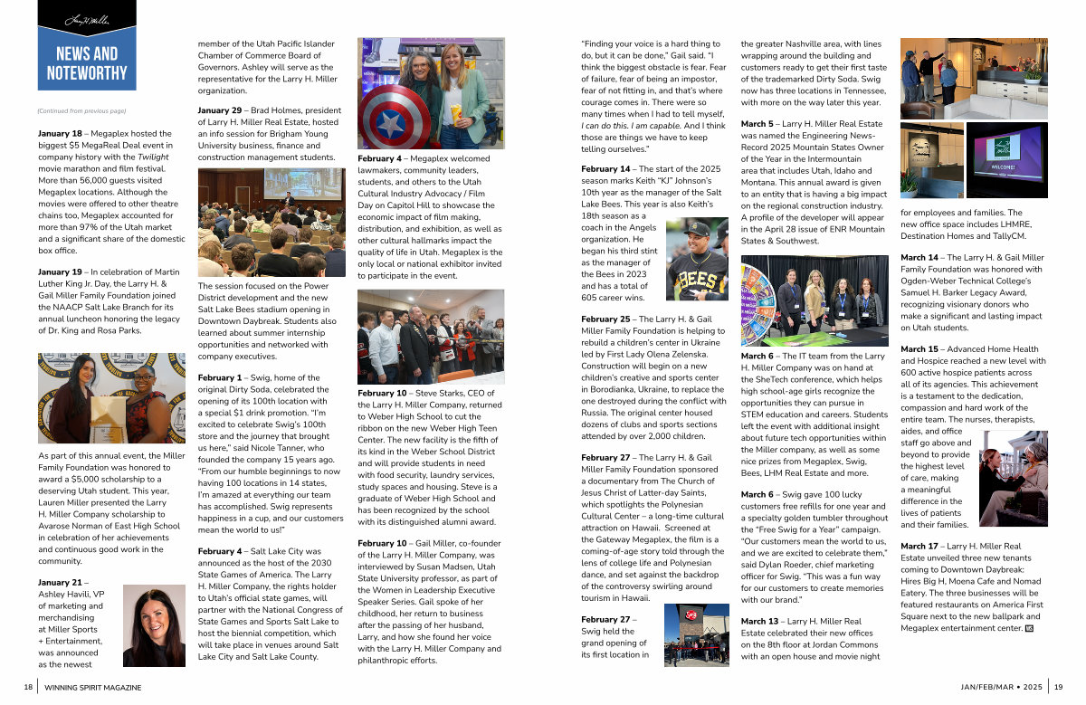 January 19 – In celebration of Martin Luther King Jr. Day, the Larry H. & Gail Miller Family Foundation joined the NAACP Salt Lake Branch for its annual luncheon honoring the legacy of Dr. King and Rosa Parks. member of the Utah Pacific Islander Chamber of Commerce Board of Governors. Ashley will serve as the representative for the Larry H. Miller organization.