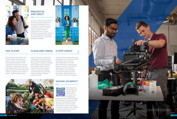 Coinciding with its 80th anniversary, Manheim added two new auto auctions to its nationwide network — the first expansion in approximately 20 years. With the acquisition of Bel Air Auto Auction in Maryland and Tallahassee Auto Auction in Florida, Manheim welcomed over 450 new team members and now boasts more than 80 auction sites. POWERING THE FUTURECox Business and Segra are securing major hyperscaler deals with Meta and Google, deploying the first indoor 6 GHz Extreme Wi-Fi network at OCV! BE in California, and delivering transformative cloud services through RapidScale’s largest wins including Mississippi’s Singing River Health System and Nevada’s Clark County School District. 20 YEARS STRONGThe Cox Employee Relief Fund celebrated 20 years of employees helping employees as they face various financial hardships caused by unexpected life events. Since its inception in the wake of Hurricane Katrina, the fund has distributed more than $18 million to more than 8,000 employees. See Page 26 to learn more. INNOVATIVE AND GREATCox was named one of Fortune’s Most Innovative Companies in America for leading the way in product innovation, process improvement and innovation culture. And for the sixth consecutive year, we were certified as a Great Place To Work by the independent third-party company, based on anonymous employee feedback. |