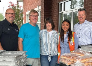 After acquiring two Maryland auctions from BSC America, Manheim hosted a welcome lunch and then donated the leftovers to a local church. Unbeknownst to the team, the church’s refrigerator had broken, spoiling the food it had originally planned to distribute. Greg LaCour (second from left) of Bel Air United Methodist Church welcomed the timely donation from Craig Amelung, Lisa Kaline, Abby Harter and Tommy Rogers of Manheim Maryland, which allowed the church to continue its food delivery service uninterrupted.
