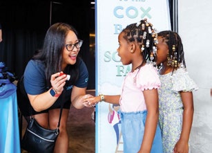 Volunteers, including Jael Ingrid Espino-Tornello, distributed free backpacks at a Cox Back to School Fair, the longest-established school readiness event in southern Nevada. In partnership with the Clark County School District in Las Vegas, Cox hosts events on four consecutive Saturdays leading up to the start of the school year.