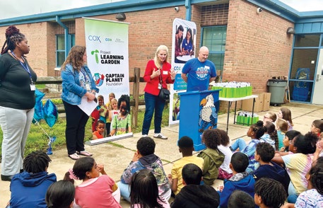 With a grant from Cox Enterprises, Falmouth Elementary School in Virginia was able to expand its learning garden, adding tools and a cooking cart to help students grow and prepare fresh produce. The project promotes hands-on learning in nutrition, science and sustainability, and was celebrated by local leaders and education advocates along with Cox Communications’ Kathryn Falk (red sweater) and Craig Amelung (blue shirt) of Cox Automotive.