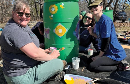 Volunteers from Cox Communications, including (from left) Tykie Lohmiller, Megan Keating and Stacey Dourado, celebrated Earth Day with the Woonasquatucket River Watershed Council in Rhode Island. The team planted, painted, mulched, cleared invasive species, removed litter from the waterway and spruced up the greenway park.