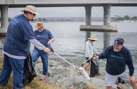 Nearly 450 volunteers from across the enterprise were in Bonita Cove for the fourth annual San Diego Beach Cleanup. Team members, including (from left) Bryan Delmar, David Wright and Joe Torres of Cox Communications, collected more than 1,000 pounds of trash and recyclables, setting a record for the most collected by any single-day cleanup in San Diego County. We also partnered with Tree San Diego to distribute 500 mature trees and saplings to members of the community to increase the local tree canopy. In all, volunteers contributed over 1,200 hours.