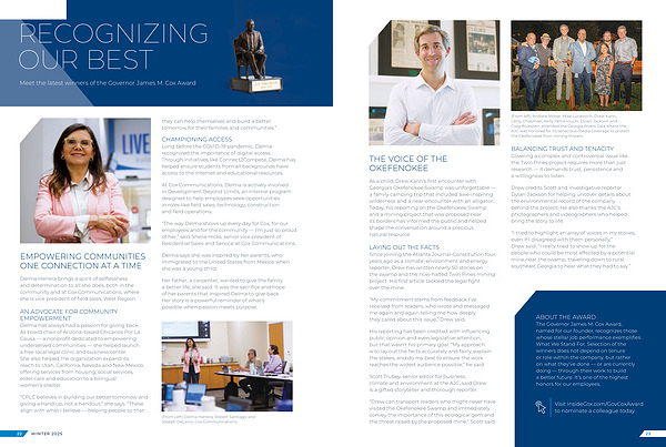 The Governor James M. Cox Award, named for our founder, recognizes those whose stellar job performance exemplifies What We Stand For. Selection of the winners does not depend on tenure or role within the company, but rather on what they’ve done — or are currently doing — through their work to build a better future. It’s one of the highest honors for our employees.