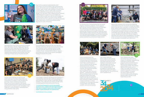 Nearly 3,100 employees participated in the 2025 Chairman’ s Challenge, volunteering over 8,000 hours at more than 100 events in support of nearly 50 nonprofit organizations. Collectively, employee actions kept over 2,000 metric tons of carbon from entering Earth’ s atmosphere. Several participants, whose commitment to conservation stood apart from the rest, received grants from the James M. Cox Foundation for their preferred environmental nonprofit.