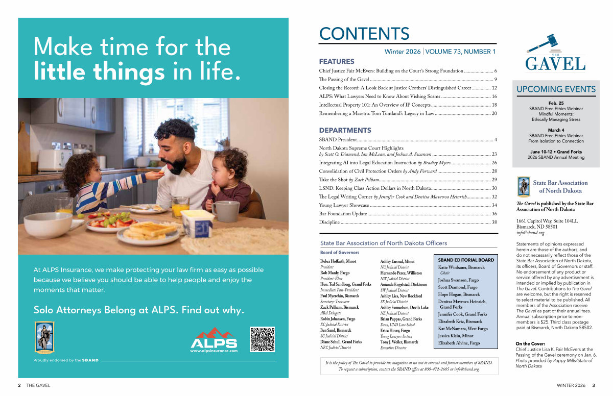 The Gavel is published by the State Bar Association of North Dakota