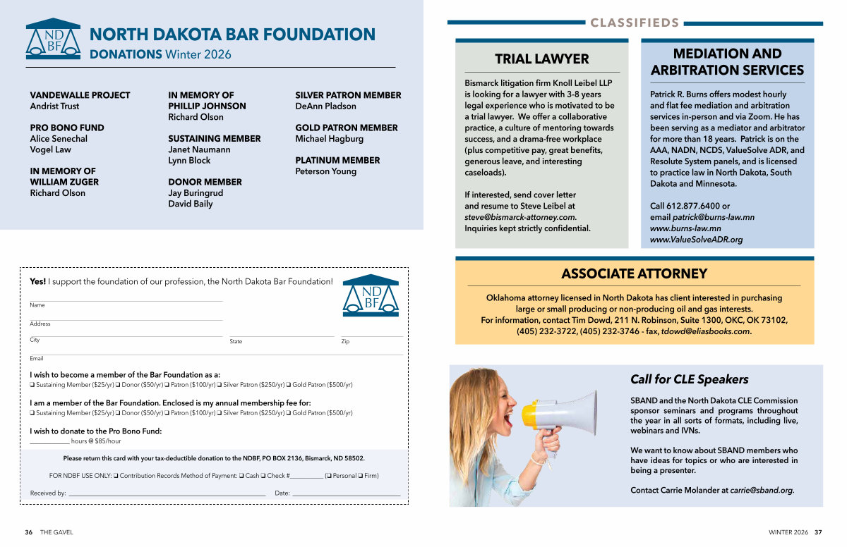 Yes! I support the foundation of our profession, the North Dakota Bar Foundation!