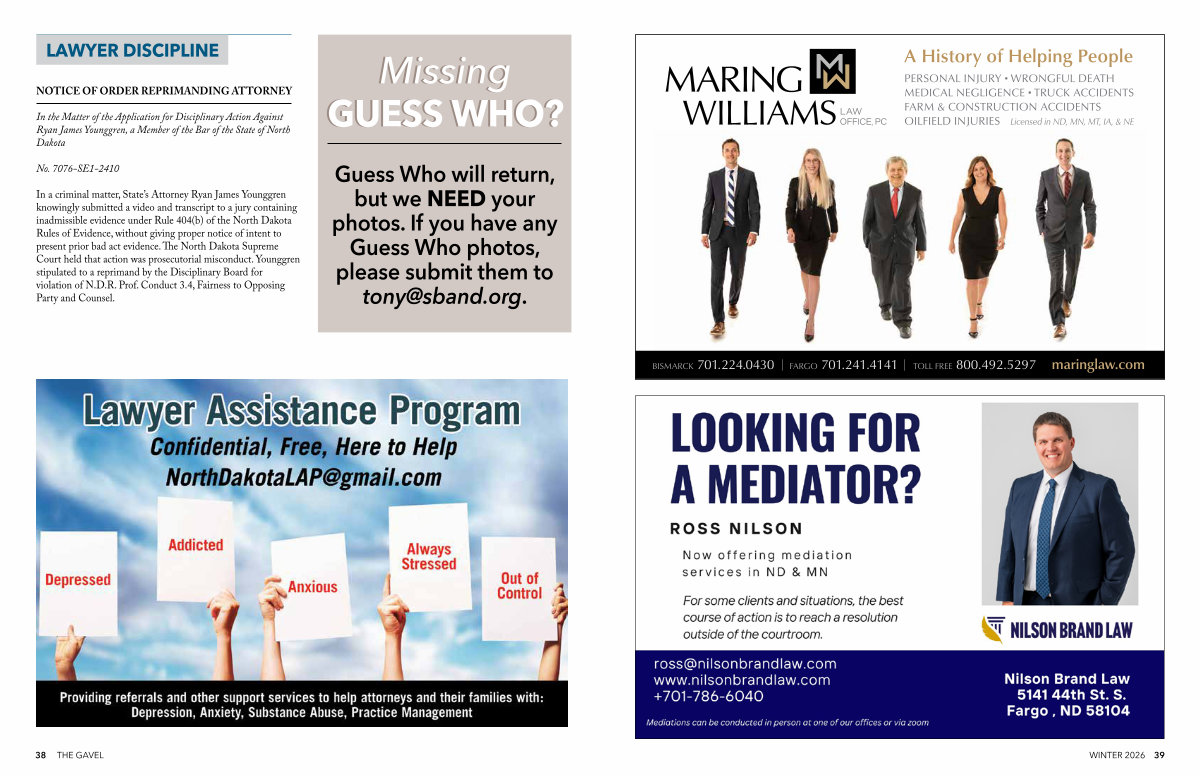 In a criminal matter, State’ s Attorney Ryan James Younggren knowingly submitted a video and transcript to a jury containing inadmissible evidence under Rule 404( b) of the North Dakota Rules of Evidence, without giving proper notice of intent to present prior bad act evidence. The North Dakota Supreme Court held that action was prosecutorial misconduct. Younggren stipulated to a reprimand by the Disciplinary Board for violation of N. D. R. Prof. Conduct 3.4, Fairness to Opposing Party and Counsel.