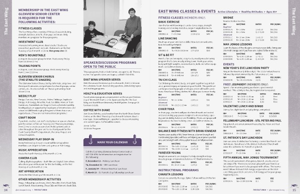 EAST WING CLASSES & EVENTS The East Wing ▪ glenviewparks.org 35