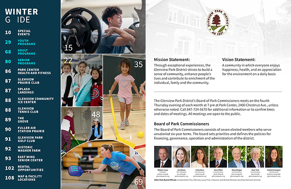 Through exceptional experiences, the Glenview Park District strives to build a sense of community, enhance people’ s lives and contribute to enrichment of the individual, family and the community.