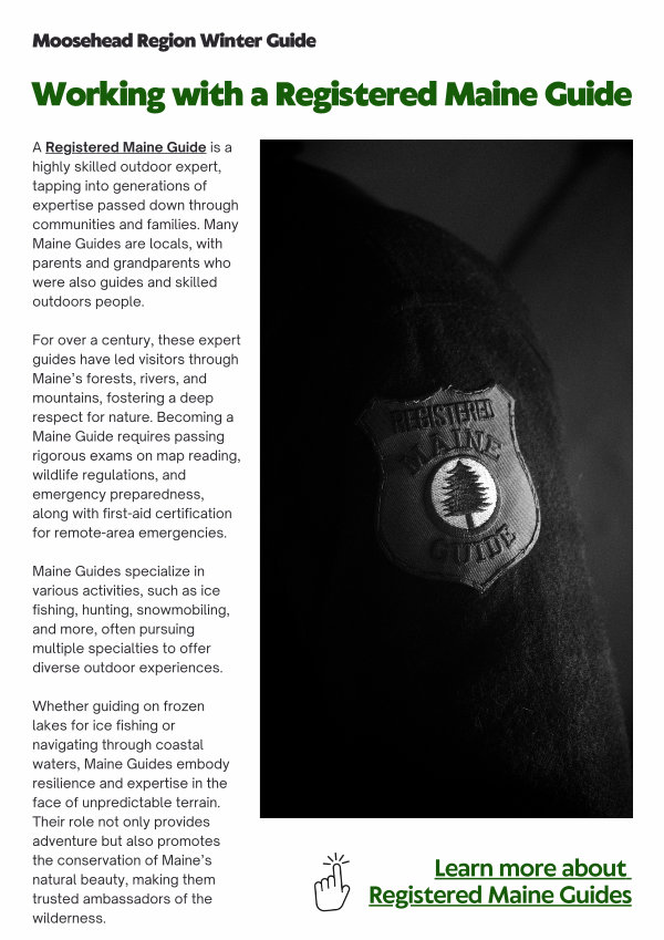 A Registered Maine Guide is a highly skilled outdoor expert, tapping into generations of expertise passed down through communities and families. Many Maine Guides are locals, with parents and grandparents who were also guides and skilled outdoors people.