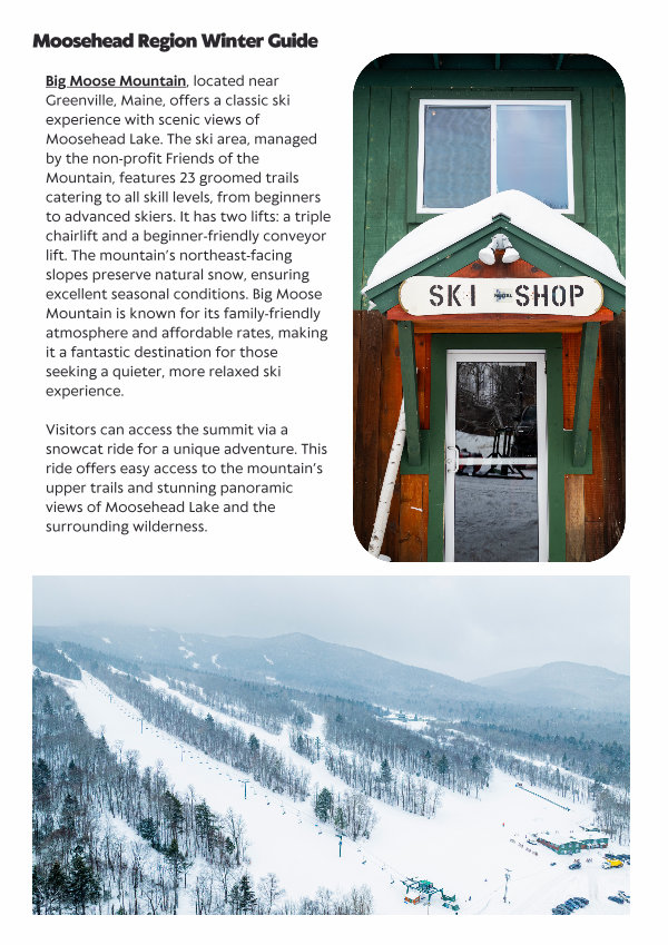 Visitors can access the summit via a snowcat ride for a unique adventure. This ride offers easy access to the mountain’ s upper trails and stunning panoramic views of Moosehead Lake and the surrounding wilderness.
