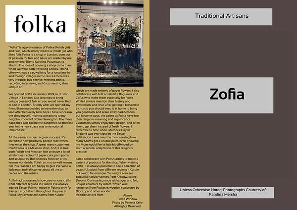 “Folka’"is a portmanteau of Polka (Polish girl) and Folk, which simply means a Polish girl who likes folk. Folka is a shop in London, born out of passion for folk and naive art, started by me and my dear friend Karolina Paczkowska Martin. The idea of opening a shop came to us when we were both travelling across Poland, often without a car, walking for a long time in and through villages in the rain as there was very irregular bus service, meeting artists, recording interviews, and documenting their unique art.