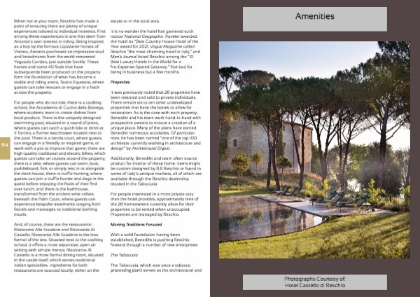 With a solid foundation having been established, Benedikt is pushing Reschio forward through a number of new enterprises: