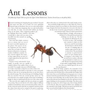 The following Chapel Talk was given by Upper School Mathematics Teacher David Lane in the fall of 2022 .
