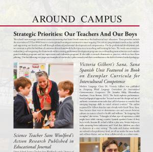 Modern Language Chair Dr . Victoria Gilbert was published in Designing World Language Curriculum for International Communicative Competence ( Dr . Jennifer Eddy , Bloomsbury Academic , Great Britain , 2022 ). The book explores performancebased pedagogical approaches “ focused around the design and use of authentic communication tasks that call for learners to transfer their emerging language skills in varied cultural contexts .” The author requested Dr . Gilbert share her unit of study with Grade Three . Sana , Sana learners share ways to demonstrate care and concern between cultures in matters related to health and wellness . “ In designing this exemplar ,” she writes , “ I thought of what type of experience a child might have while visiting a native Spanish speaker ’ s home if they lost a tooth , became ill , or had a fall in a play area . Stories help us to make meaning from unknowns and I find that children can relate to characters in a story setting .” The tasks each learner undertakes are tailored to his proficiency level , yet all are under the same health and wellness theme , and are done collaboratively as a cohort team .