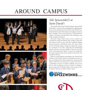 This past fall , Saint David ’ s Chamber Singers sang with Yale Spizzwinks (?), America ’ s oldest undergraduate a cappella group . In an early morning Master Class with the Saint David ’ s boys , the Spizzwinks (?) stressed the importance of a physical warm-up prior to singing : “ You are your instrument .” Soft / hard palates , explosive consonants , and solid advice about bringing a song to life rounded out the lesson .