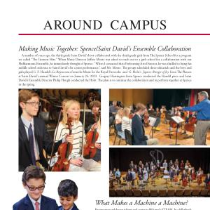 A number of years ago , the third-grade Saint David ’ s boys collaborated with the third-grade girls from The Spence School for a program we called “ The Greatest Hits .” When Music Director Jeffrey Moore was asked to reach out to a girls school for a collaboration with our Philharmonic Ensemble , he immediately thought of Spence . “ When I contacted their Performing Arts Director , he was thrilled to bring his middle school orchestra to Saint David ’ s for a joint performance ,” said Mr . Moore . The groups scheduled three rehearsals and the boys and girls played G . F . Handel ’ s La Réjouissance from the Music for the Royal Fireworks and G . Holst ’ s Jupiter , Bringer of Joy from The Planets at Saint David ’ s annual Winter Concert on January 26 , 2023 . Gregory Harrington from Spence conducted the Handel piece and Saint David ’ s Ensemble Director Philip Hough conducted the Holst . The plan is to continue the collaboration and to perform together at Spence in the spring .