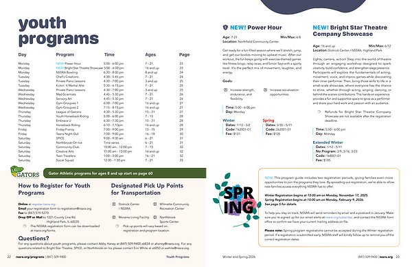 Winter Registration begins at 10:00 am on Monday, November 17, 2025. Spring Registration begins at 10:00 am on Monday, February 9, 2026. See page 5 for details.