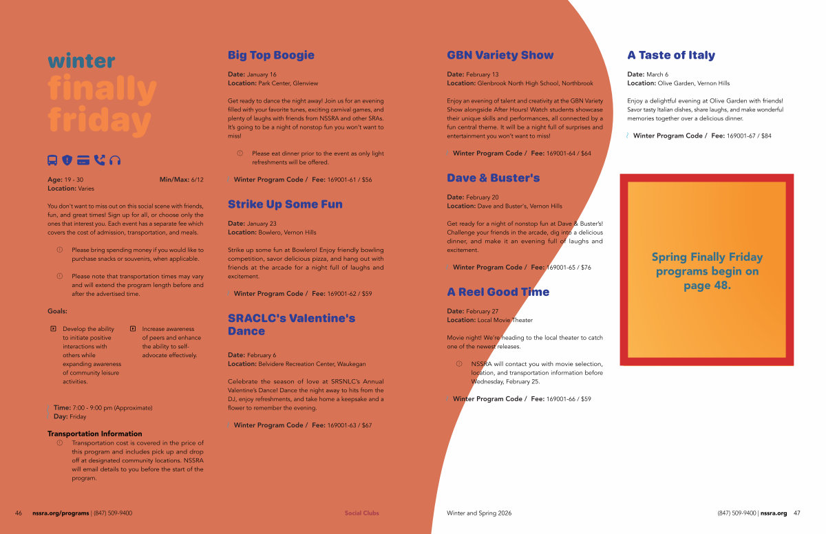 46 nssra. org / programs |( 847) 509-9400 Social Clubs