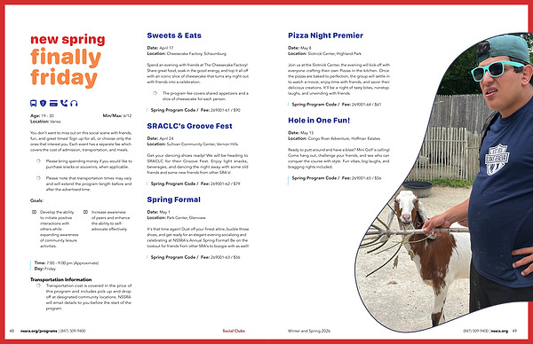 48 nssra. org / programs |( 847) 509-9400 Social Clubs