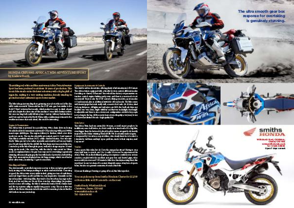Grin factor: The Africa Twin has been around for 30 years, so you’ d expect people to be indifferent, seen it all before, etc. But it really does turn heads. It’ s a big bike, even bigger than the last model, plus it has that mean, arrogant look, heavily inspired by the Dakar winning Honda NXR 750. It certainly made me grin. I was passed by two riders on sports bikes, who clearly knew how to ride. So I decided to tail them and kept up no problem, much to their surprise, need I say more?