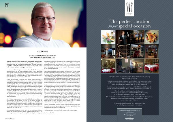 Welcome dear readers as we enter October , and autumn ’ s embrace with it . And , of course , we now ready ourselves for the fast-approaching Christmas countdown . For The Art School , Barnacle and everyone involved in hospitality , both locally and nationally , it ’ s these coming weeks we now build toward as the festive season grows ever closer .