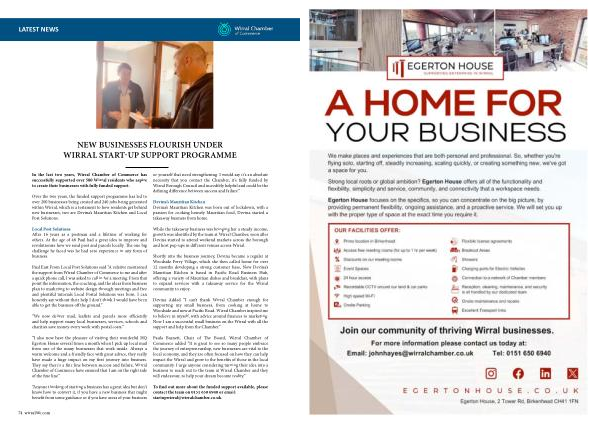“ I also now have the pleasure of visiting their wonderful HQ Egerton House several times a month when I pick up local mail from one of the many businesses that work inside . Always a warm welcome and a friendly face with great advice , they really have made a huge impact on my first journey into business . They say there ' s a fine line between success and failure , Wirral Chamber of Commerce have ensured that I am on the right side of the fine line .”