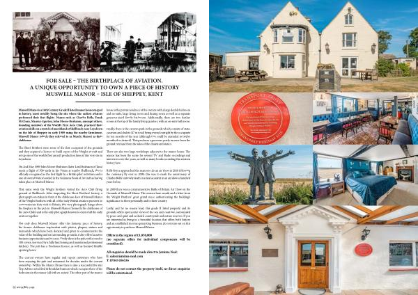 FOR SALE – THE BIRTHPLACE OF AVIATION . A UNIQUE OPPORTUNITY TO OWN A PIECE OF HISTORY MUSWELL MANOR – ISLE OF SHEPPEY , KENT