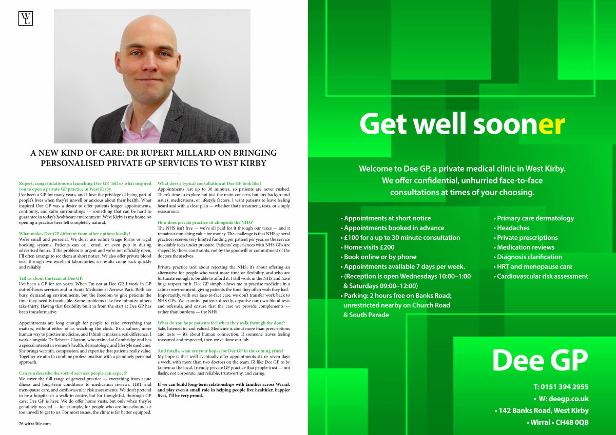 Welcome to Dee GP, a private medical clinic in West Kirby. We offer confidential, unhurried face-to-face consultations at times of your choosing.