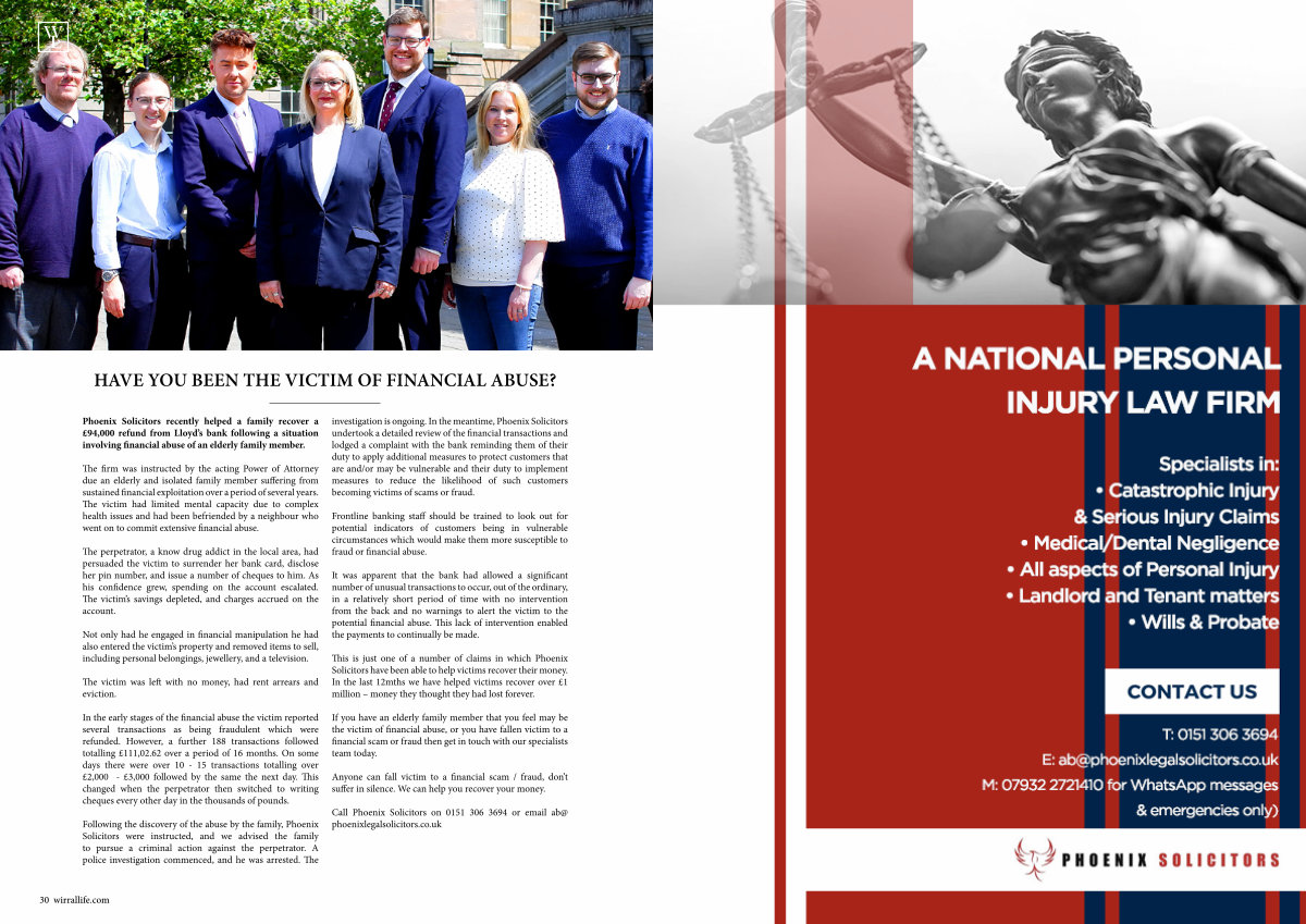Phoenix Solicitors recently helped a family recover a £ 94,000 refund from Lloyd’ s bank following a situation involving financial abuse of an elderly family member.