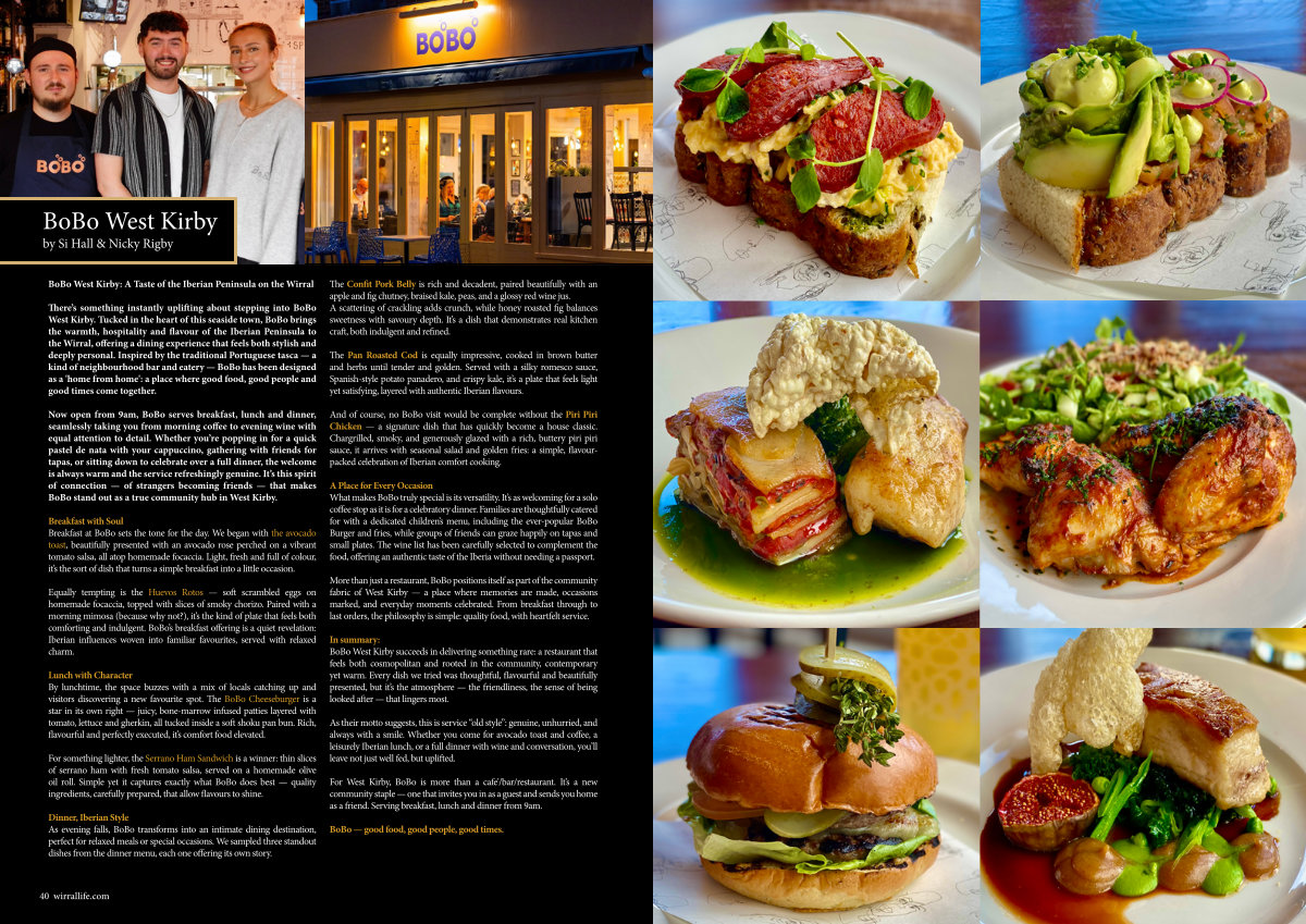 Now open from 9am, BoBo serves breakfast, lunch and dinner, seamlessly taking you from morning coffee to evening wine with equal attention to detail. Whether you’ re popping in for a quick pastel de nata with your cappuccino, gathering with friends for tapas, or sitting down to celebrate over a full dinner, the welcome is always warm and the service refreshingly genuine. It’ s this spirit of connection— of strangers becoming friends— that makes BoBo stand out as a true community hub in West Kirby.