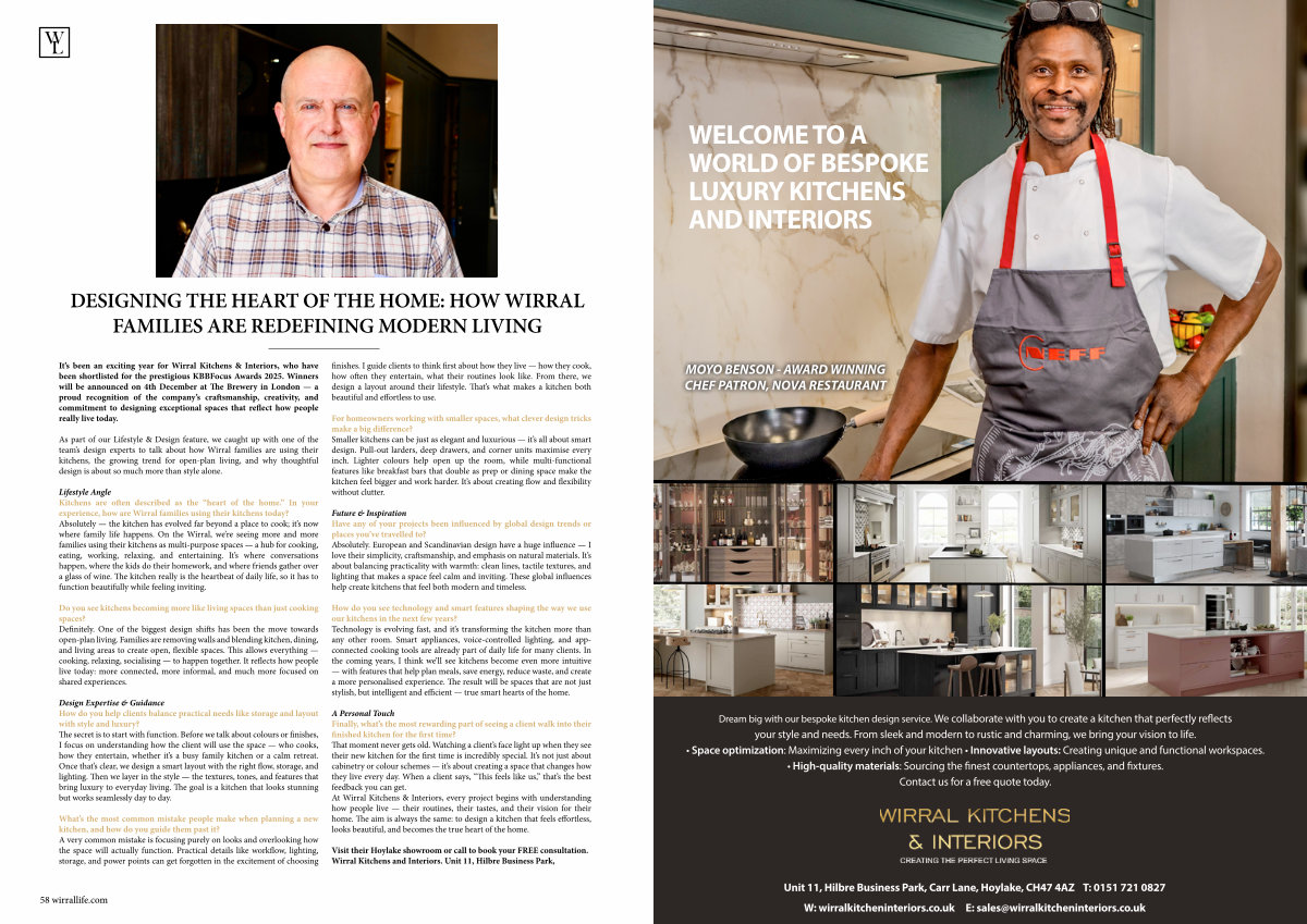 Lifestyle Angle Kitchens are often described as the“ heart of the home.” In your experience, how are Wirral families using their kitchens today? Absolutely— the kitchen has evolved far beyond a place to cook; it’ s now where family life happens. On the Wirral, we’ re seeing more and more families using their kitchens as multi-purpose spaces— a hub for cooking, eating, working, relaxing, and entertaining. It’ s where conversations happen, where the kids do their homework, and where friends gather over a glass of wine. The kitchen really is the heartbeat of daily life, so it has to function beautifully while feeling inviting.