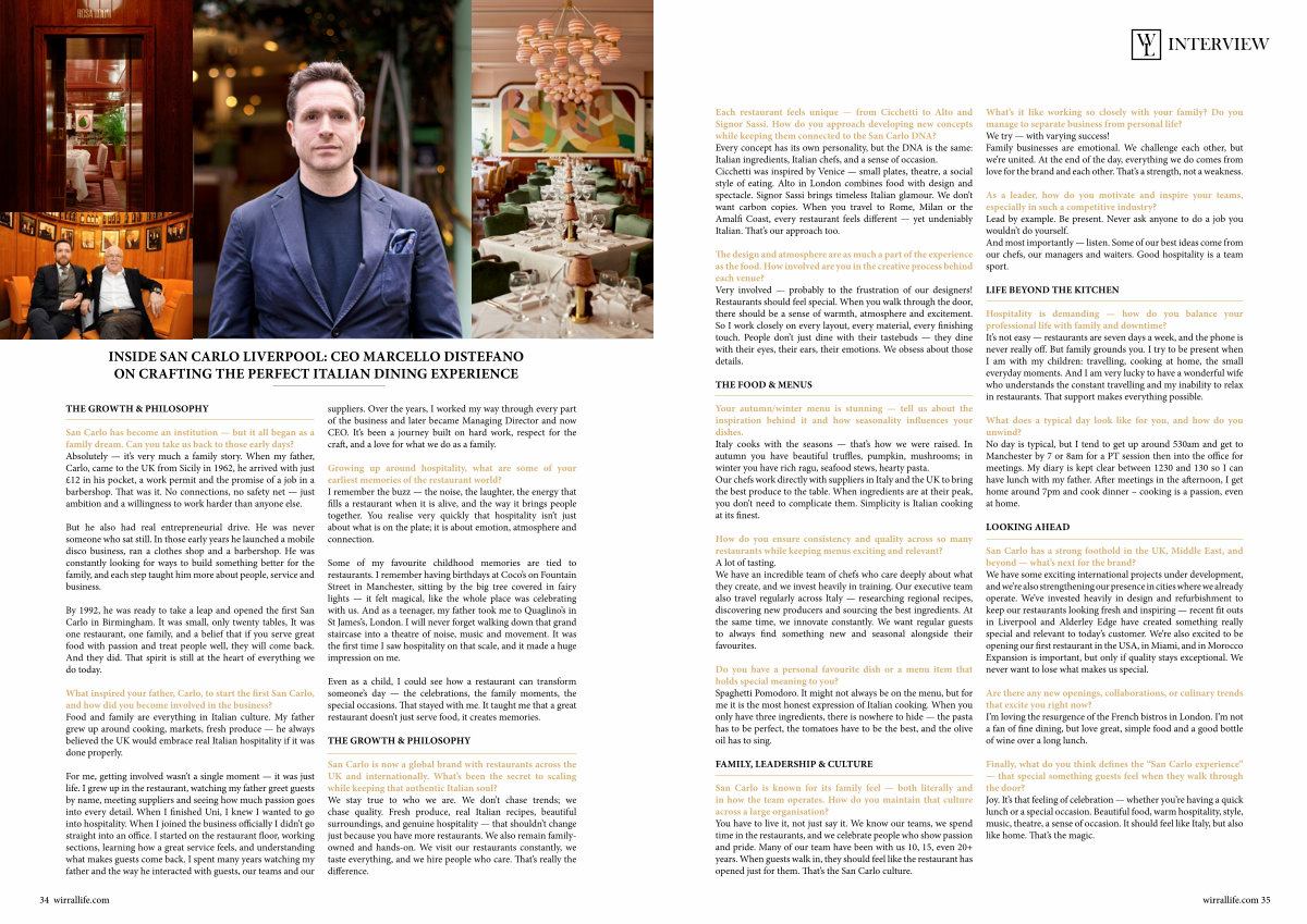 INSIDE SAN CARLO LIVERPOOL: CEO MARCELLO DISTEFANO ON CRAFTING THE PERFECT ITALIAN DINING EXPERIENCE
