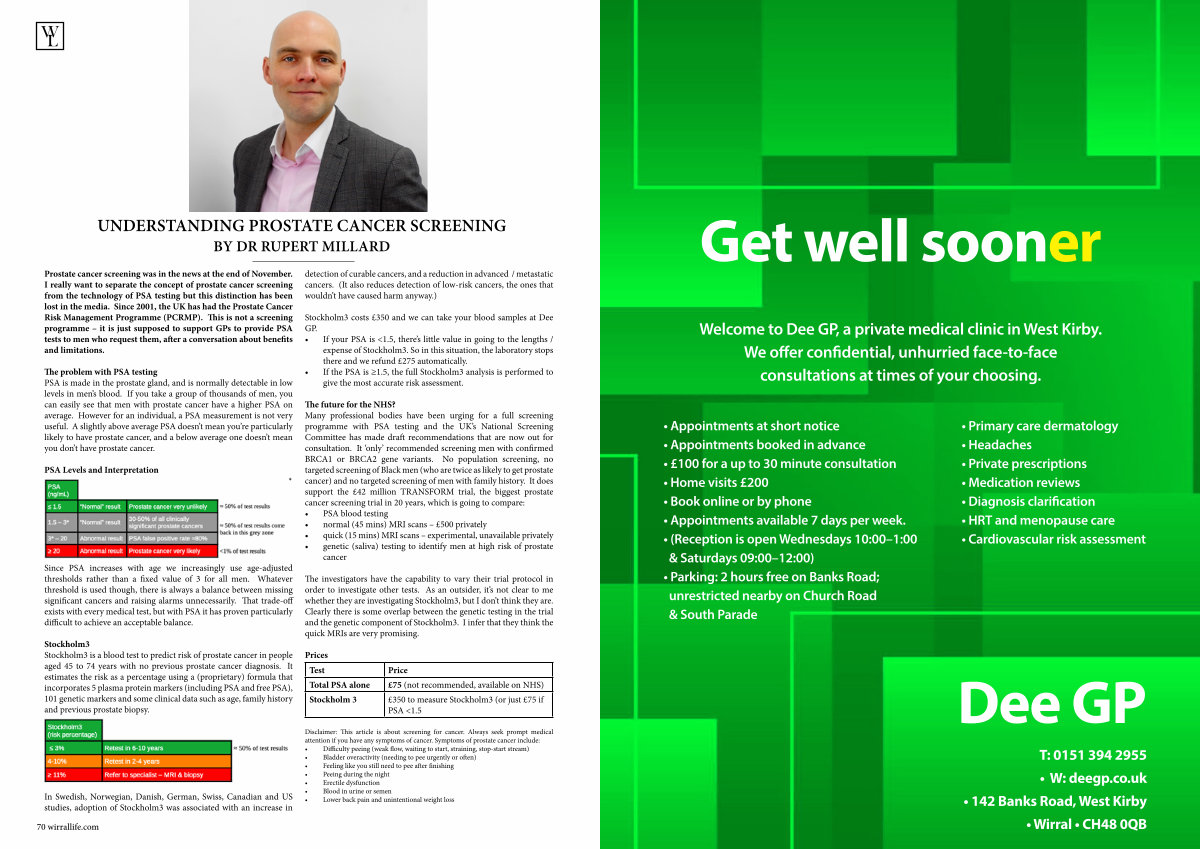 Welcome to Dee GP, a private medical clinic in West Kirby. We offer confidential, unhurried face-to-face consultations at times of your choosing.