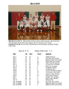 Back Row (L to R): Mr . Michael Eldr ed (Head Coach), Dakota Kangas, Alex Kr onfor st,