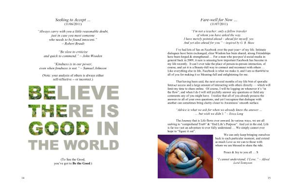I ’ ve had lots of fun on Facebook over the past year + of my life . Intimate dialogues have been exchanged , clear Wisdom has been shared , strong Friendships have been forged & strengthened … For a man who poo-poo ’ d social media in general back in 2009 , it sure is amusing how important Facebook has become in my life recently . It can ’ t ever take the place of person-to-person interaction , of course , and yet it is a Beauty-full way to connect and reconnect with others … Like everything else in life , Facebook is what we make it , and I am so thankful to all of you for making it so Meaning-full and enlightening for me .
