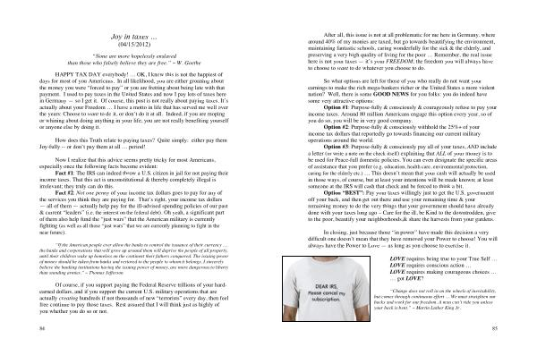 How does this Truth relate to paying taxes ? Quite simply : either pay them Joy-fully -- or don ’ t pay them at all … period !