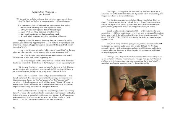 Now , I will freely admit that giving radical , selfless , unconditional LOVE to strangers and enemies ( and dragons ) alike is quite difficult . To this I can personally attest … And yet this option is always available to you , and in those moments when you do choose to follow its path , it is a choice that will indeed allWays brings great Peace .