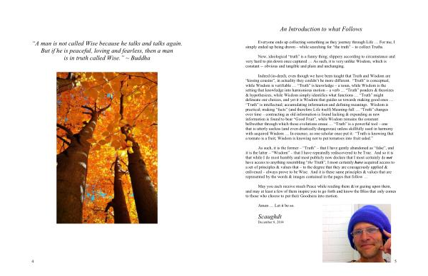 As such , it is the former – “ Truth ” – that I have gently abandoned as “ false ”, and it is the latter – “ Wisdom ” – that I have repeatedly rediscovered to be True . And so it is that while I do most humbly and most publicly now declare that I most certainly do not have access to anything resembling “ the Truth ”, I most certainly have acquired access to a set of principles & values that – to the degree that they are courageously applied & enlivened – always prove to be Wise . And it is these same principles & values that are represented by the words & images contained in the pages that follow …