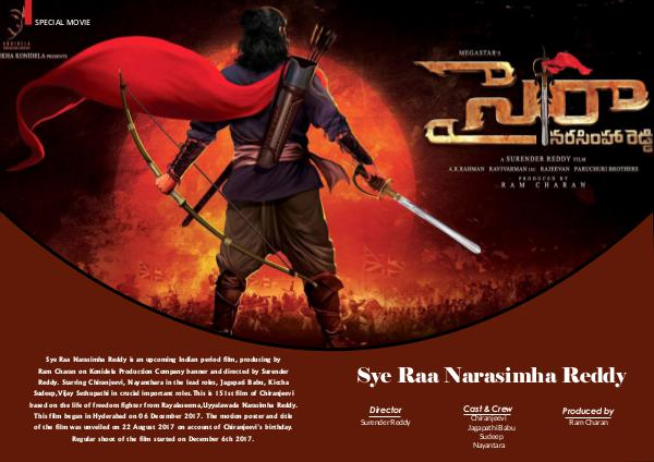 Sye Raa Narasimha Reddy Director Surender Reddy Cast & Crew Chiranjeevi Jagapathi Babu Sudeep Nayantara Produced by Ram Charan FEBRUARY 2018 | WWW.WISHESH.NET