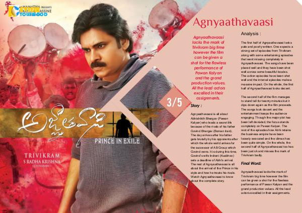 Agnyaathavaasi lacks the mark of Trivikram big time however the film can be given a shot for the flawless performance of Pawan Kalyan and the grand production values. All the lead actors excelled in their assignments.