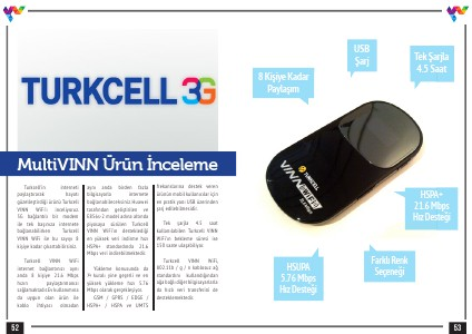 USB Şarj Tek Şarjla 4.5 Saat 8 Kişiye Kadar Paylaşım HSPA+ 21.6 Mbps Hız Desteği HSUPA 5.76 Mbps Hız Desteği Farklı Renk Seçeneği 53
